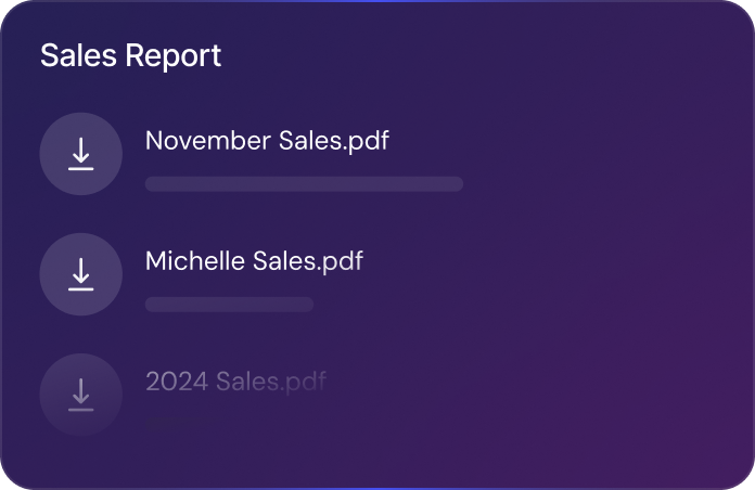Easily download reports comprising of data from your sales reps or a costum date range.